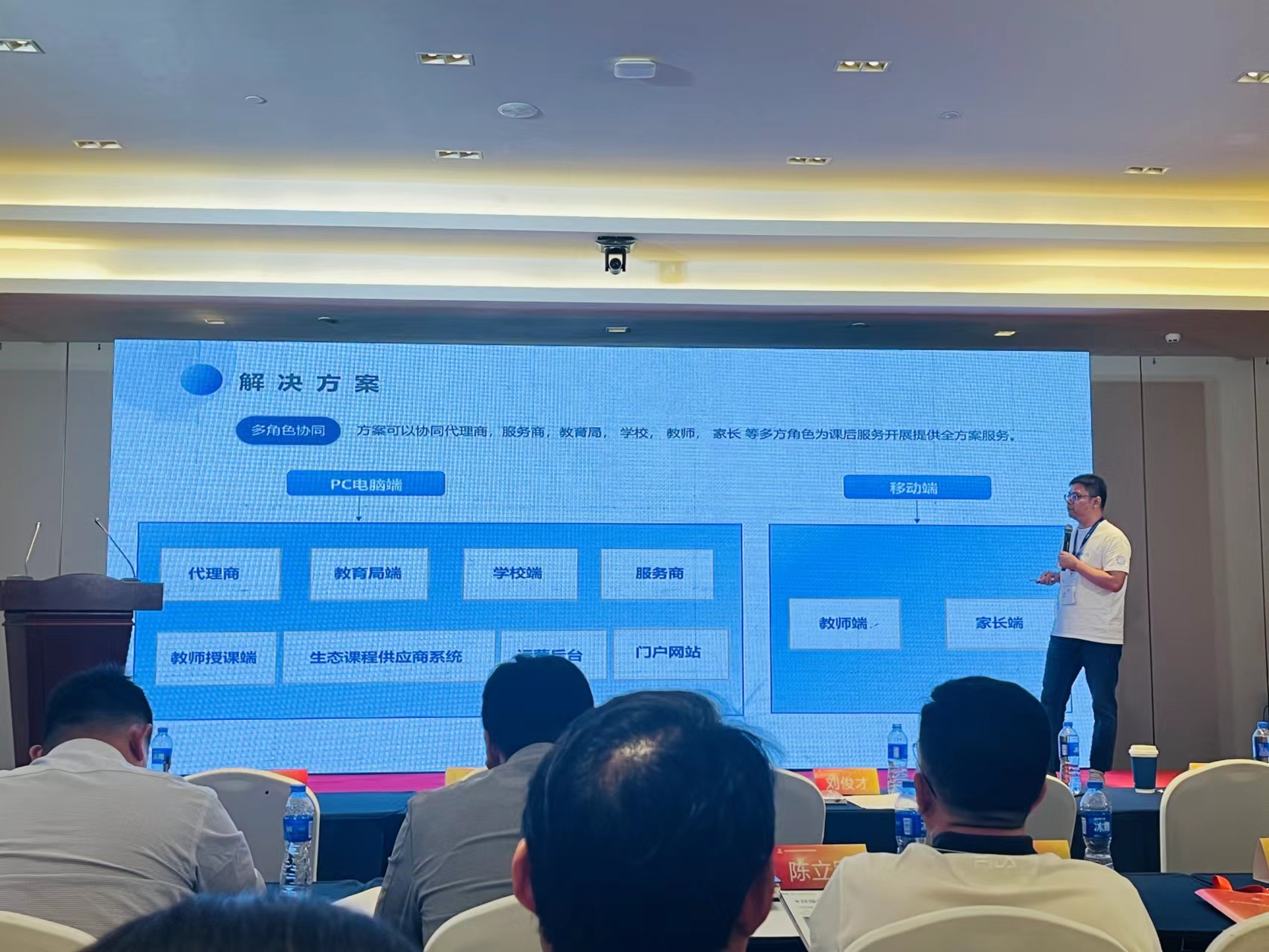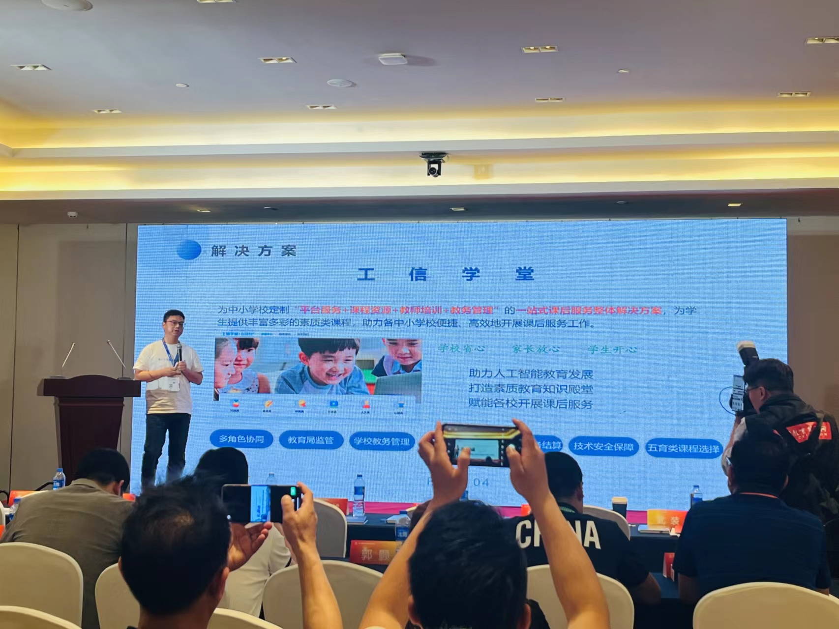 随后,中国电子教育学会青少年教育分会课后服务专业委员会主任朱浩从功能、技术、课程、资源、理念等几个方面,向与会嘉宾和观众全面介绍了“工信学堂”中小学素质教育课后服务平台的整体体系并进行了经验分享。“工信学堂”有效助推了中小学劳动教育的发展,吸引了众多关注。