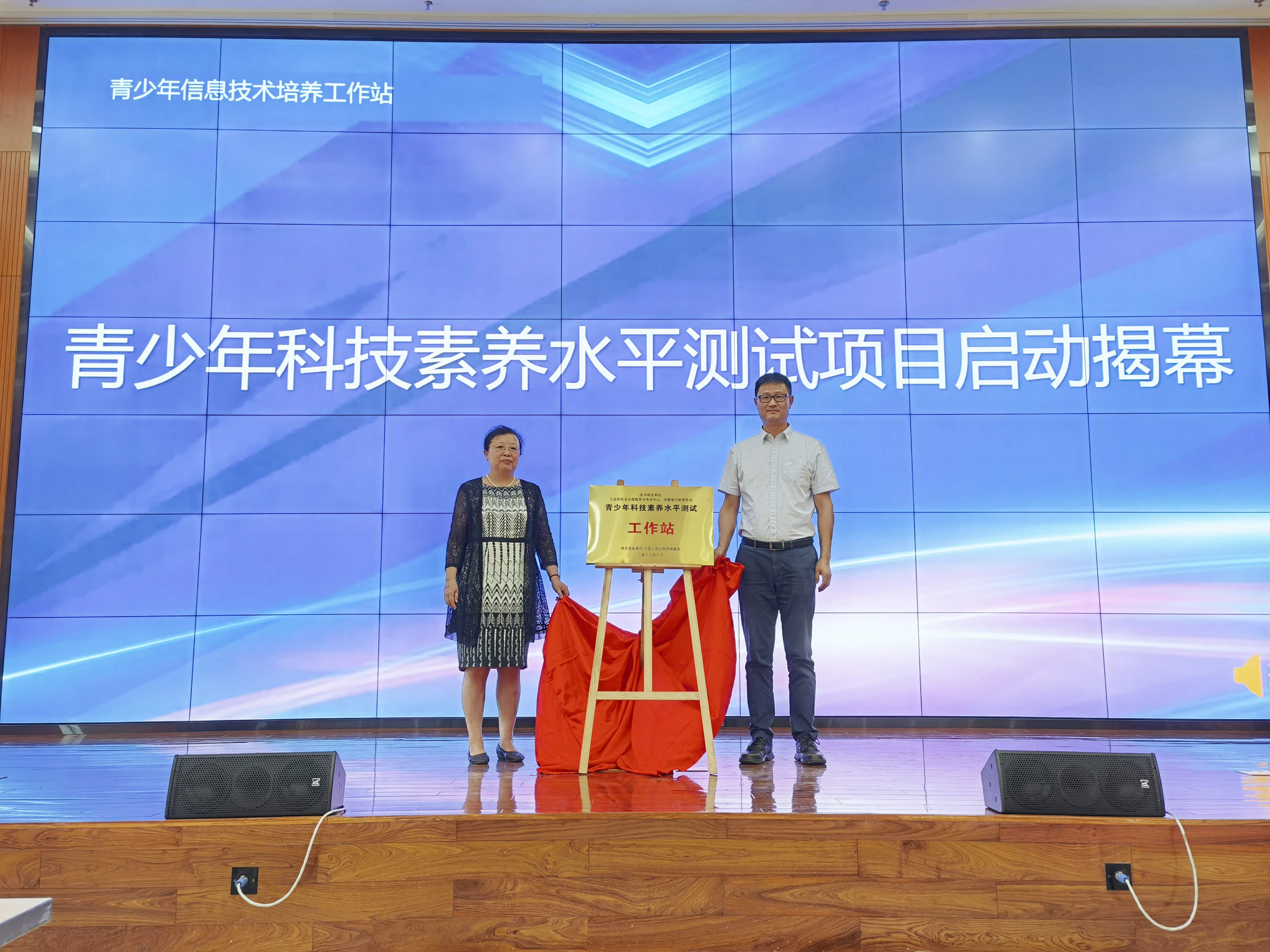 马蔷和赵晨阳共同为“青少年科技素养水平测试”项目揭牌,“青少年科技素养水平测试”项目正式启动。