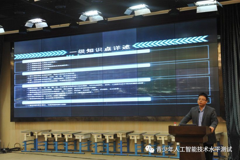 培训会上,青少年人工智能技术水平测试工作站朱浩对项目考试体系、考试流程以及水平测试一级、二级考试大纲与课件内容依次进行了介绍,并为现场嘉宾和老师耐心的答疑解惑。